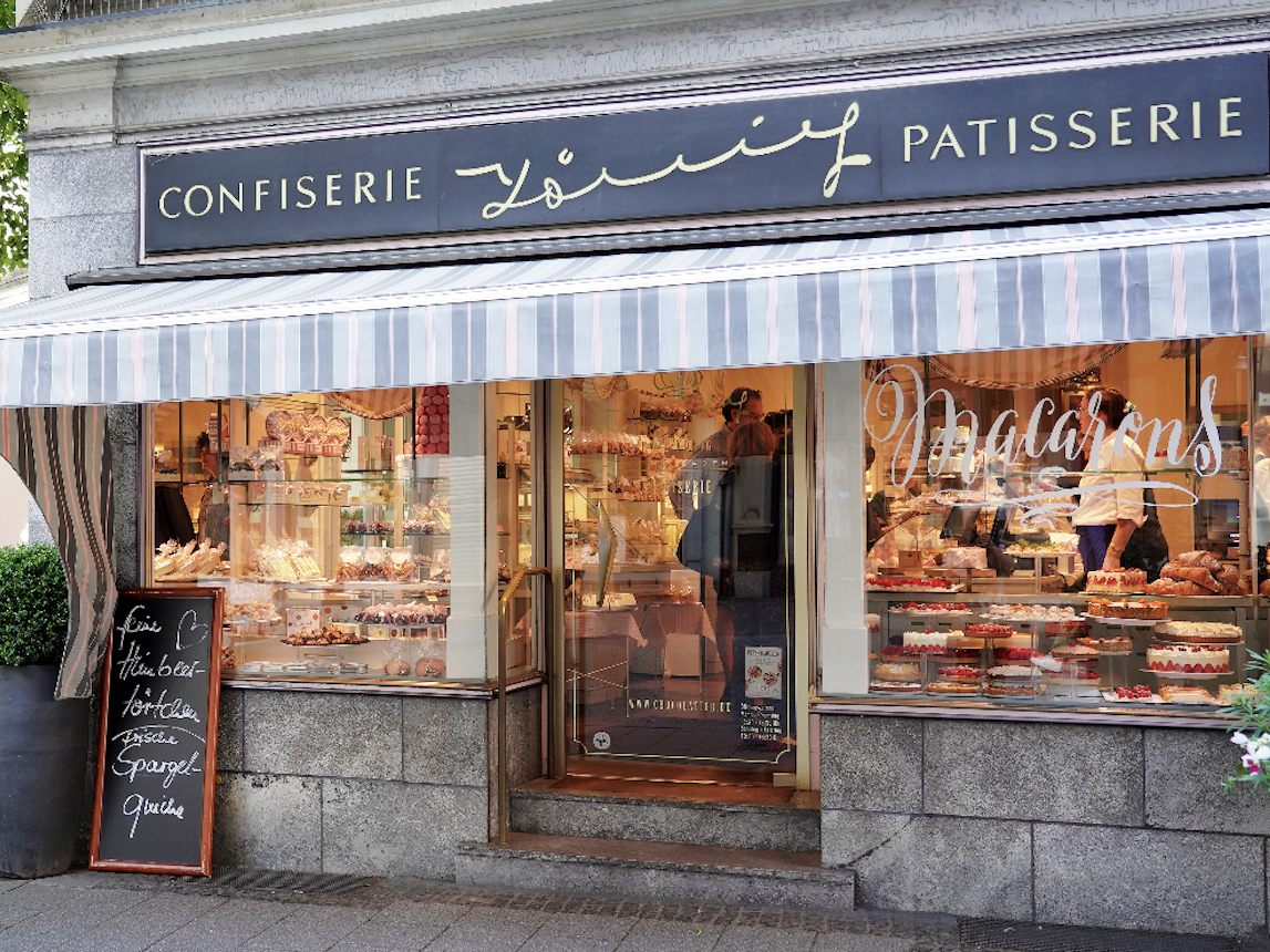 Immer wieder eine Freude, diese Institution des Konditorenhandwerks zu betreten. Feinste Confiserie, Pralinen, Trüffel und Naschwerk zum Träumen – im zentralen Geschäft auf der Rückseite der Königsallee lockt ein Sortiment, das den Mund offen stehen lässt. Den Anspruch spürt man in jeder Minute, etwa, wenn das freundliche, stets livrierte Verkaufspersonal professionell die gut gefüllte Kuchenvitrine erklärt: Hier bekommt man keinen Pflaumenkuchen, hier bekommt man Kuchen aus sortenreinen Auerbach-Pflaumen, wenn sie denn Saison haben – die Wartezeit nimmt man gern in Kauf. Kross und fruchtig-süß schmeckt die meisterhafte Florentiner-Torte mit Kirschen, zart mit Schmelz der traditionelle Baumkuchen, von dem man auch Bruch kaufen kann. Für die exquisite Herrentorte reisen manche von weither an. Die hohe Stammkundenrate in der Düsseldorfer Zentrale spricht für sich, sieben weitere Filialen in der Landeshauptstadt und am Niederrhein sowie die Münchner Exklave bei Ludwig Beck versorgen zuverlässig anspruchsvolle Naschkatzen.