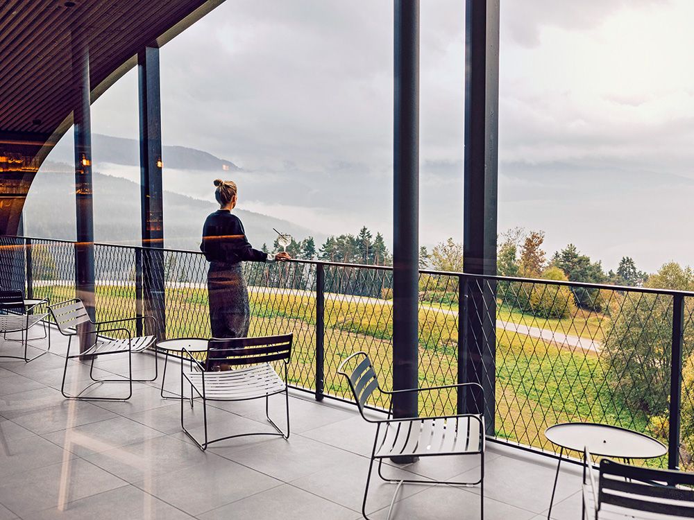 Trotz vieler Angebote wie Wandern, Reiten oder einer Seilbahnfahrt ist doch hier oben auf über tausend Metern der weite Blick so phänomenal, dass man sie getrost ignorieren kann und dennoch nicht das Gefühl hat, etwas verpasst zu haben. Von der Lounge-Terrasse, die wie ein Schiffsbug anmutet, schaut man über Bozen und das Etschtal, durch die raumhoch verglaste Panoramalounge oder vom Infinity-Pool aus schweift der Blick von den Dolomiten bis zum Mendelgebirge. Wer dann etwas Abwechslung benötigt, wechselt in den Spa-Bereich mit Outdoor-Sauna und Anwendungen wie Lärchenmassage und Almheubad. Und, ja, es gibt viele gute Weingüter in Südtirol – aber die Weine liegen glücklicherweise auch im hoteleigenen Keller. www.belvedere-hotel.it