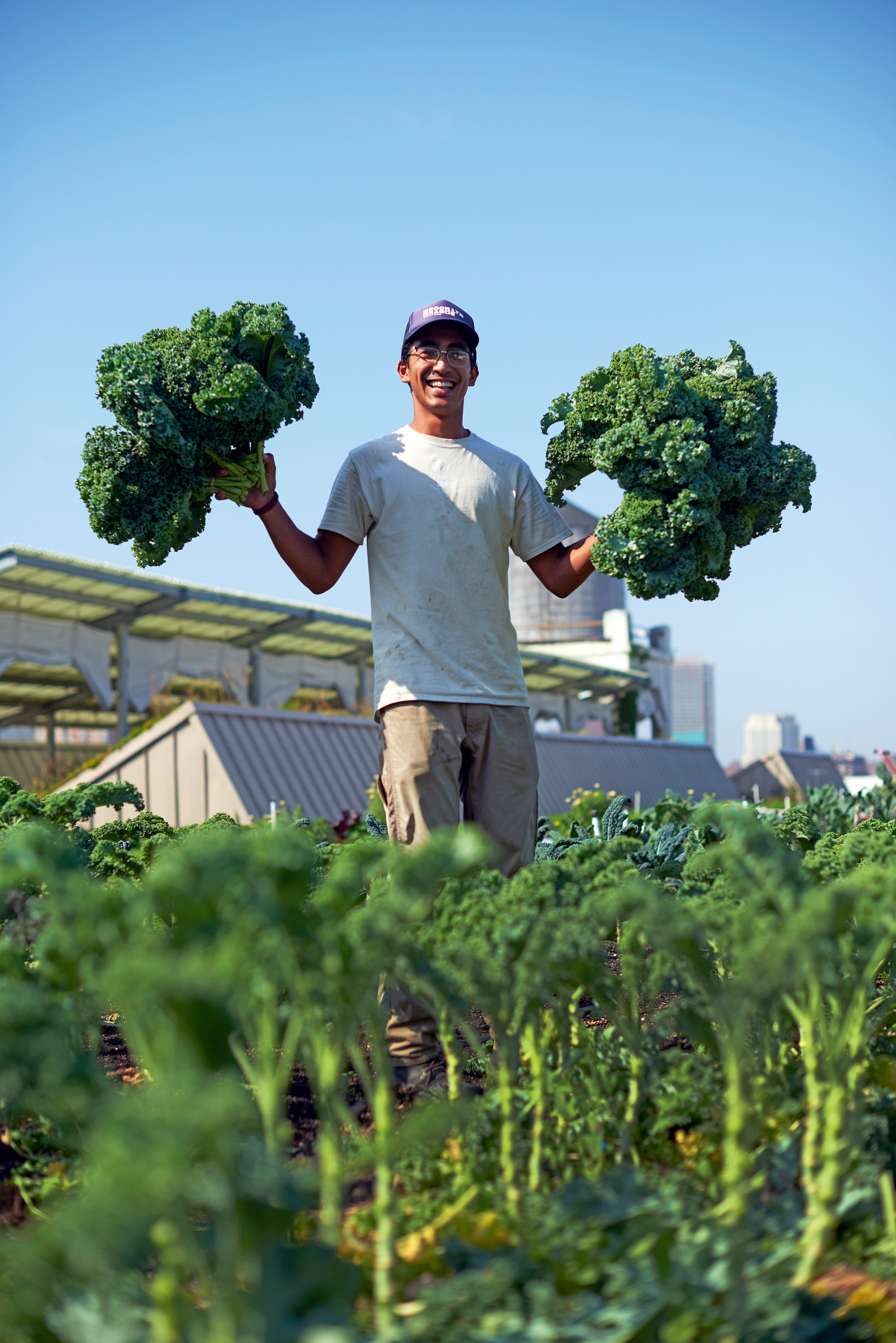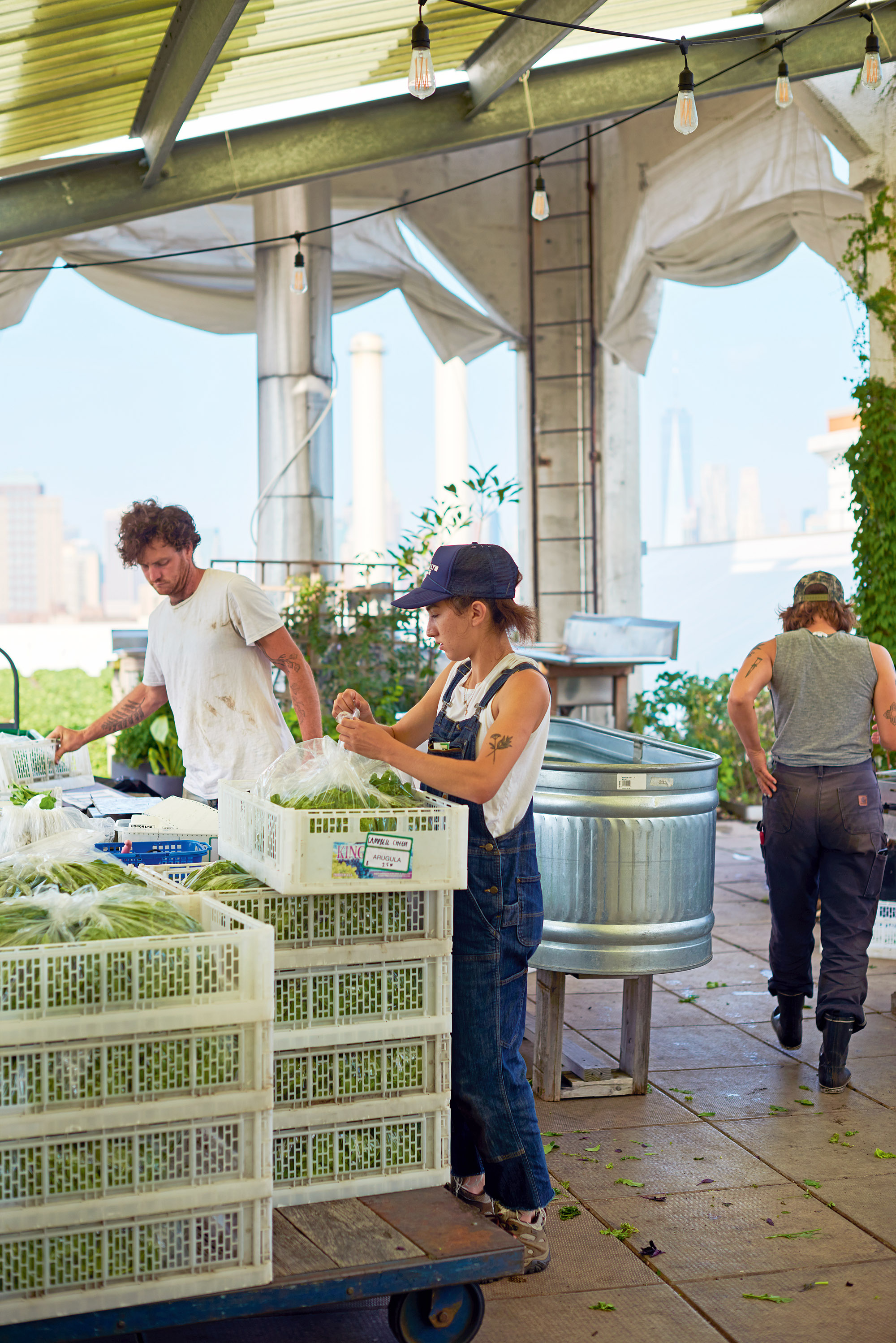 Gegründet wurde Brooklyn Grange 2009. Damals taten sich Ben Flanner, Anastasia Plakias und Gwen Schantz zusammen, drei junge Aktivisten, die sich zu der Zeit für Natur und Umweltschutz und für Gemüsegärten besonders in den ärmeren Stadtteilen von New York einsetzten. 2010 wurde ihr erstes Rooftop in Long Island City in Queens verwirklicht, 2012 folgte das zweite in Brooklyns ehemaligem Marinehafen, dem Navy Yard, und im Sommer 2019 das dritte in Brooklyns Sunset Park. „Bitte auf den markierten Wegen bleiben, hier wird gearbeitet“, ermahnt Tracy.