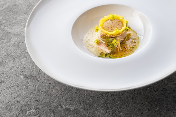 Im urbanen Ambiente des eigenen Restaurants gelingt Jan Hartwig deutsche Autorenküche im besten Sinne. Großes Degustationsmenü, mittags auch in reduzierter Version.