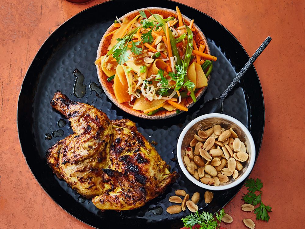 Wir grillen asiatisch: mit fernöstlichen Marinaden für Rippchen Peking-Style, Tomahawk-Steak und knuspriges Huhn. Der Clou: exotische Dips, eingelegtes Gemüse, aromatische Salate