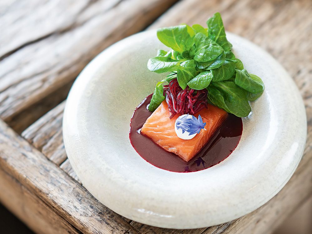 Küche: Dominik Paul hat hier seine ganz eigene Handschrift entwickelt – naturnah, saisonal, innovativ interpretiert und inszeniert. Im Hauptgang etwa kommt Lachs mit Auster und Kohlrabi auf den Teller, ein Landei kombiniert er mit Roter Bete und Parmesan, Zander mit Zwiebel und Sellerie. Erfrischendes Predessert ist etwa Preiselbeere mit Joghurt und der Zitrone Buddhas Hand.